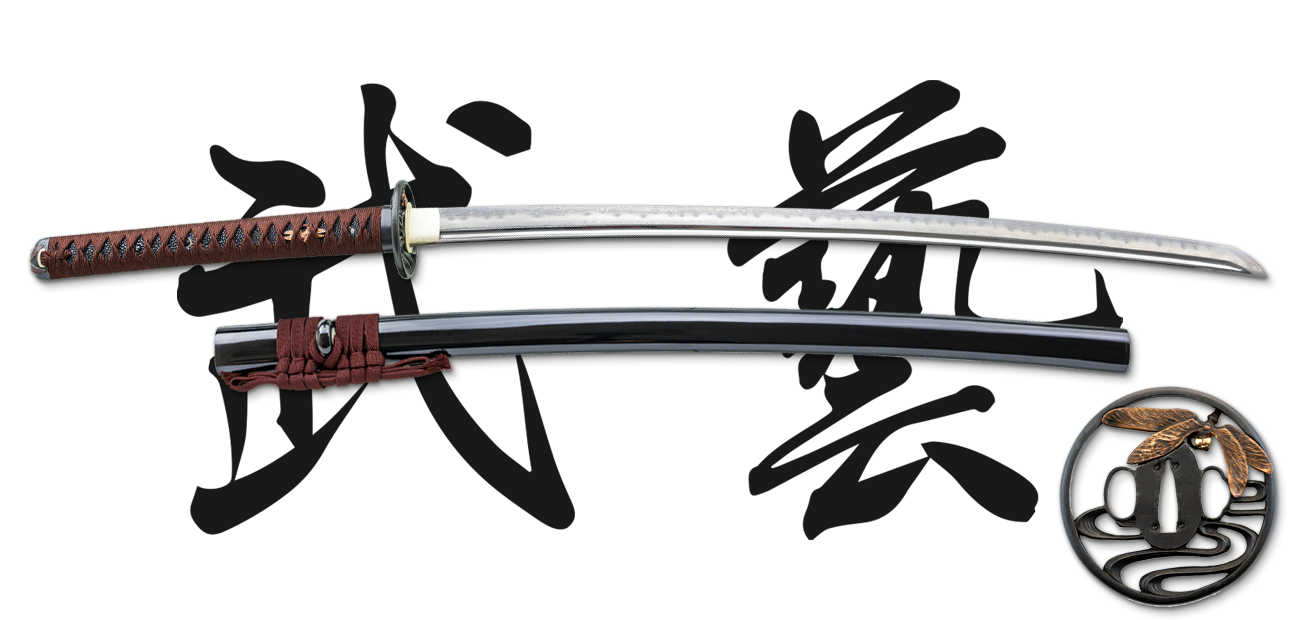 The dark brown silk ito is set off by the black same making this a unique offering. The lower shinogi and the scant hira-niku make this blade lighter and faster, and gives it less resistance when cutting soft targets. The tsuka has the slight “waisting”, ryugo, that is popular with many who study Japanese sword arts.