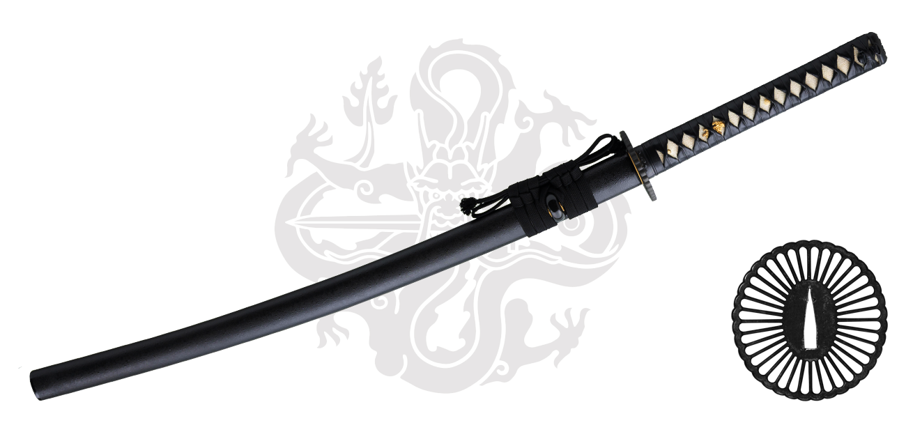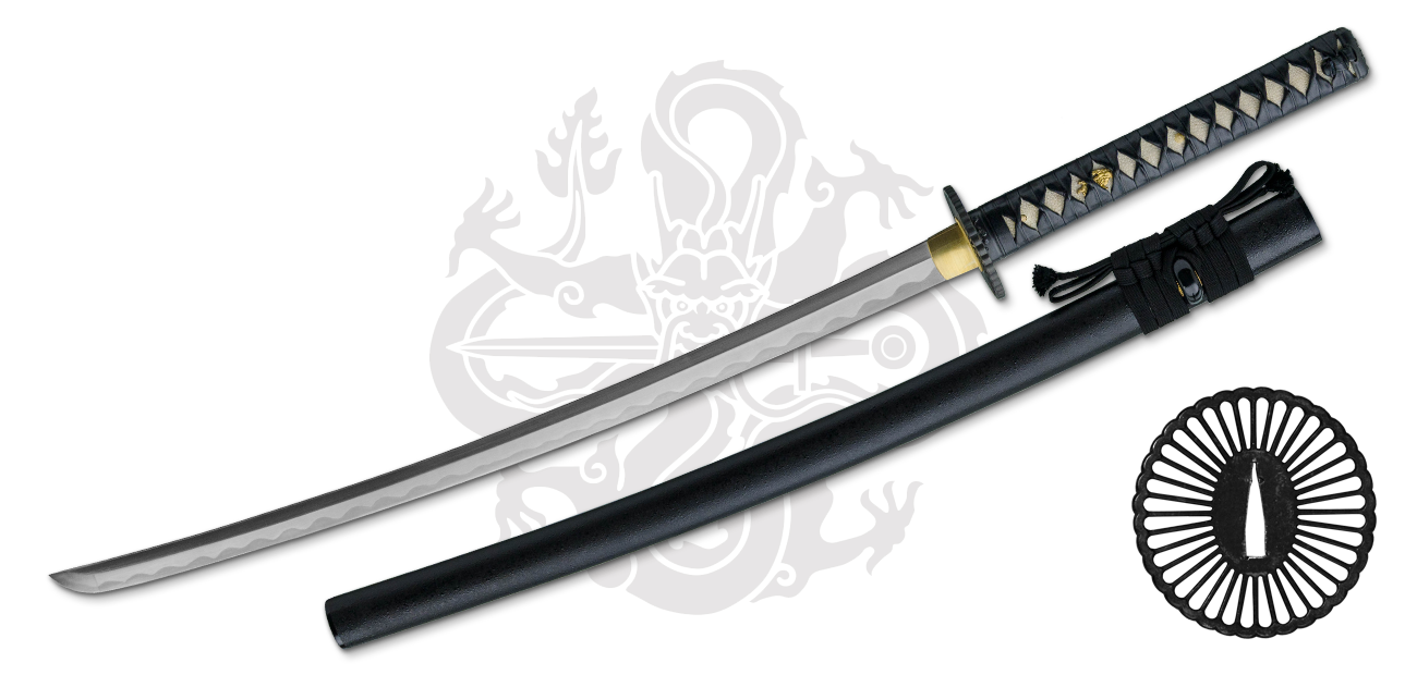 The fittings of the Practical Plus Katana are decorated in a Japanese Dogwood motif with dragon menuki and the handsome tsuba is of an iron “sunburst” design with a brass habaki. Elevating the elegance and adding more striking beauty to the sword art of the katana, the Practical Plus Katana just makes owning all that a little more affordable and traditionally made. This katana has become one of the favorites of practitioners and collectors alike.